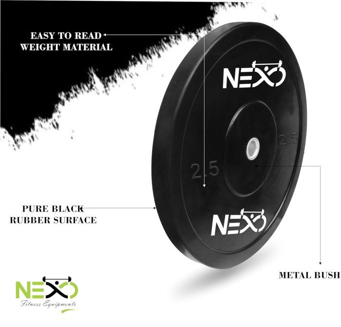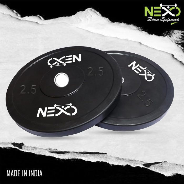 Professional-grade bumper plates: Upgrade your home gym with NEXO Black Olympic Professional Bumper Exercise Rubber Plates, designed for serious strength training.