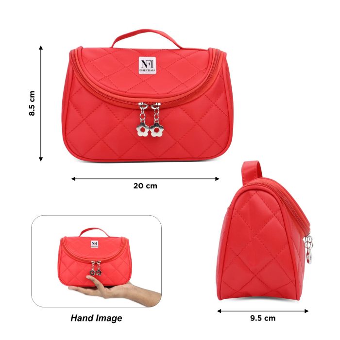 This women cosmetic bag made of durable premium cushioned polyester fabric. It has smooth zipper and durable handle and precise stitching. Classic and solid bright color make the toiletry bag very trendy & beautiful which adds shining stars to your personality.