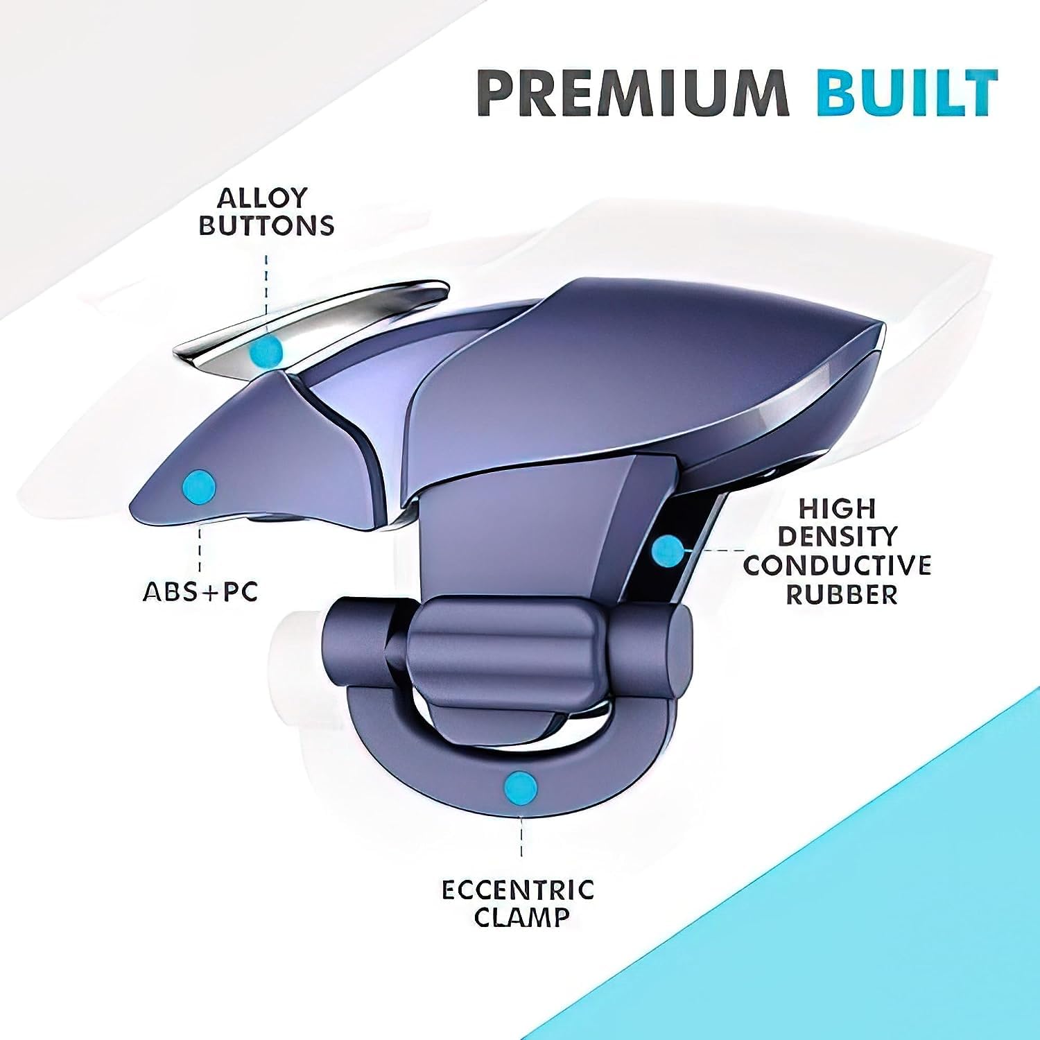 Mobile Gaming Triggers for PUBG Mobile-L1R1- Supports for All Android and iOS Phones-1 Pair-(Midnight Blue) Blue Shark Pubg Trigger does not Block the Map & Give You A Great View. Highly Sensitive Touch, Eat Chicken Quickly! Moving Aiming And Shooting At The Same Time, Reduce The Reaction Time So That You Can Shoot The Enemies Quickly. Support Devices: Blue Shark Trigger support all the Android & iPhones. Support Games: This trigger is designed for all kind o d shooting games including Call of Duty/ PUBG/Knives Out/Survivor Royal/Critical Ops etc. Great Game Experience :Convenient control and sensitive operation with the mobile game controller will bring you more excited game experience and higher scores. More Sensitive: Our mobile game controller offers flexible installation position, not mess with phone buttons and takes negligible screen sight. No Sheltering From Sight: Blue Shark triggers take up hardly any space at the top of the screen. They have a very satisfying click when you pull the triggers as well.