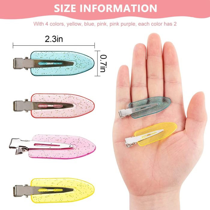 BANGS HAIR CLIP SET: Great affordibility, including 8 pcs bang hair clip with 4 color, yellow, blue, pink, pink purple, each color has 2 . You can do various combination for various hair style. Each is 6cm (2.4″) about in length. The no curl pin clips are no sawtooth and leave no crease on your hair even after a long-time wearing, won’t leave a mark on hair after longtime wear.