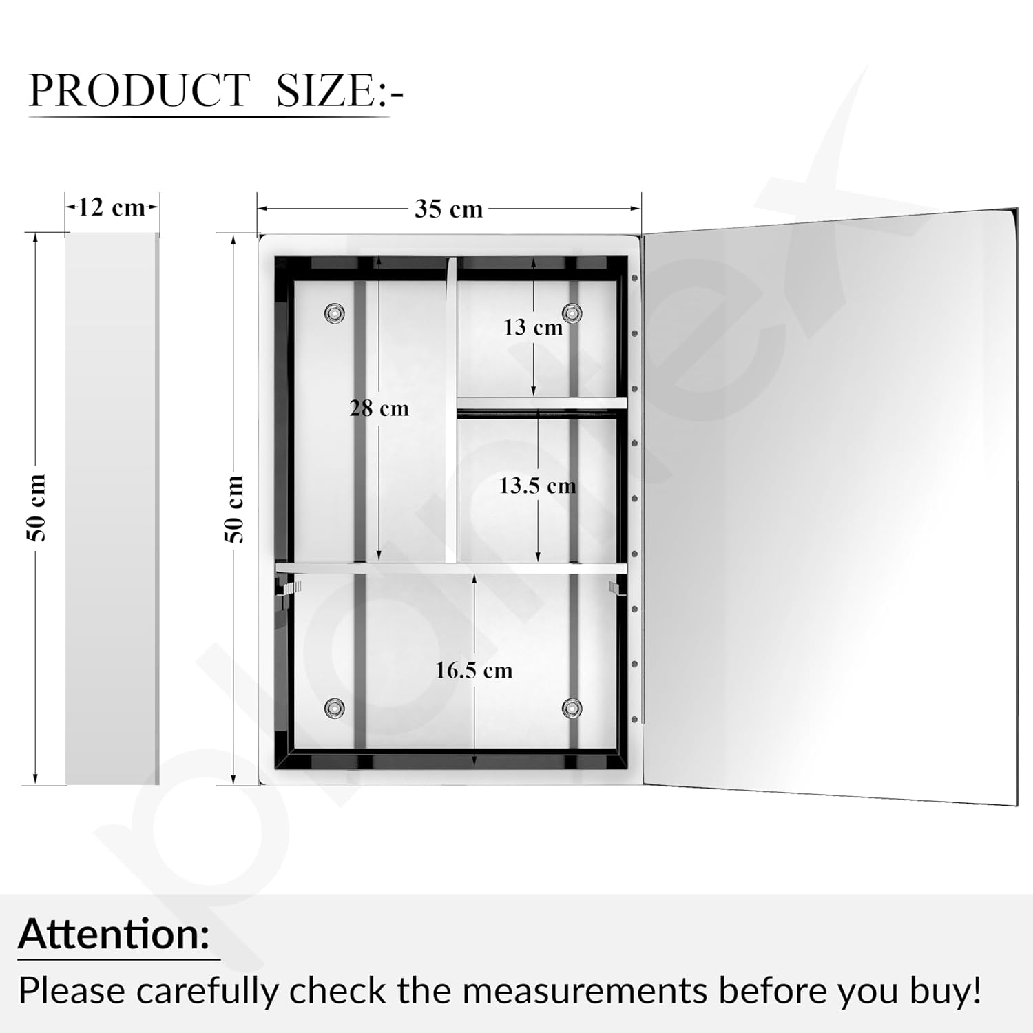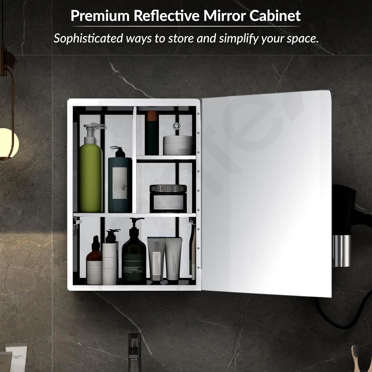 𝗠𝘂𝗹𝘁𝗶𝗽𝘂𝗿𝗽𝗼𝘀𝗲: The mirror used is of premium quality by a standard company. You can store your toiletries, bathing accessories, makeup kit, shaving kit, and other necessary items. The nickel-chrome coating makes the product rust-proof and corrosion-free. The mirror finishing adds beauty and makes our mirror cabinet scratches-resistance.