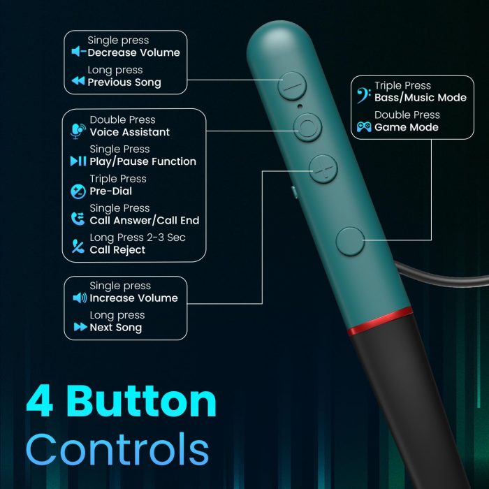 4 Button Control – Stay in control of your sound with intuitive Inline Control Buttons. Music, calls, volume – it’s all at your fingertips. Experience seamless user-friendliness with these advanced neckband earphones.