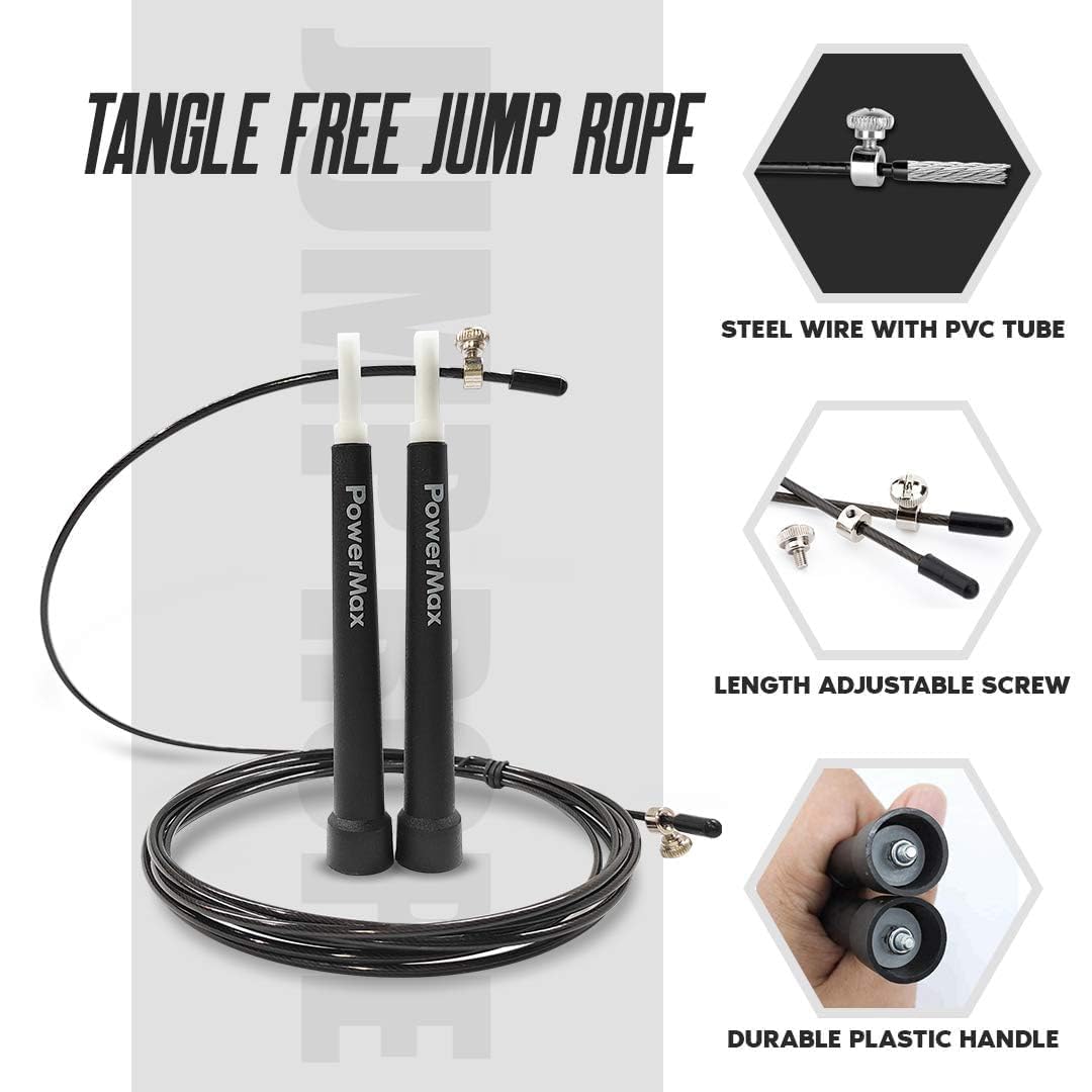 PowerMax Fitness JP-2 Skipping Rope for Unisex Adults, Tangle free Jumping Rope with Adjustable Rope length for Training, Exercise, Weight Loss, Crossfit, Boxing and HIIT Workouts (Colour – Black)
