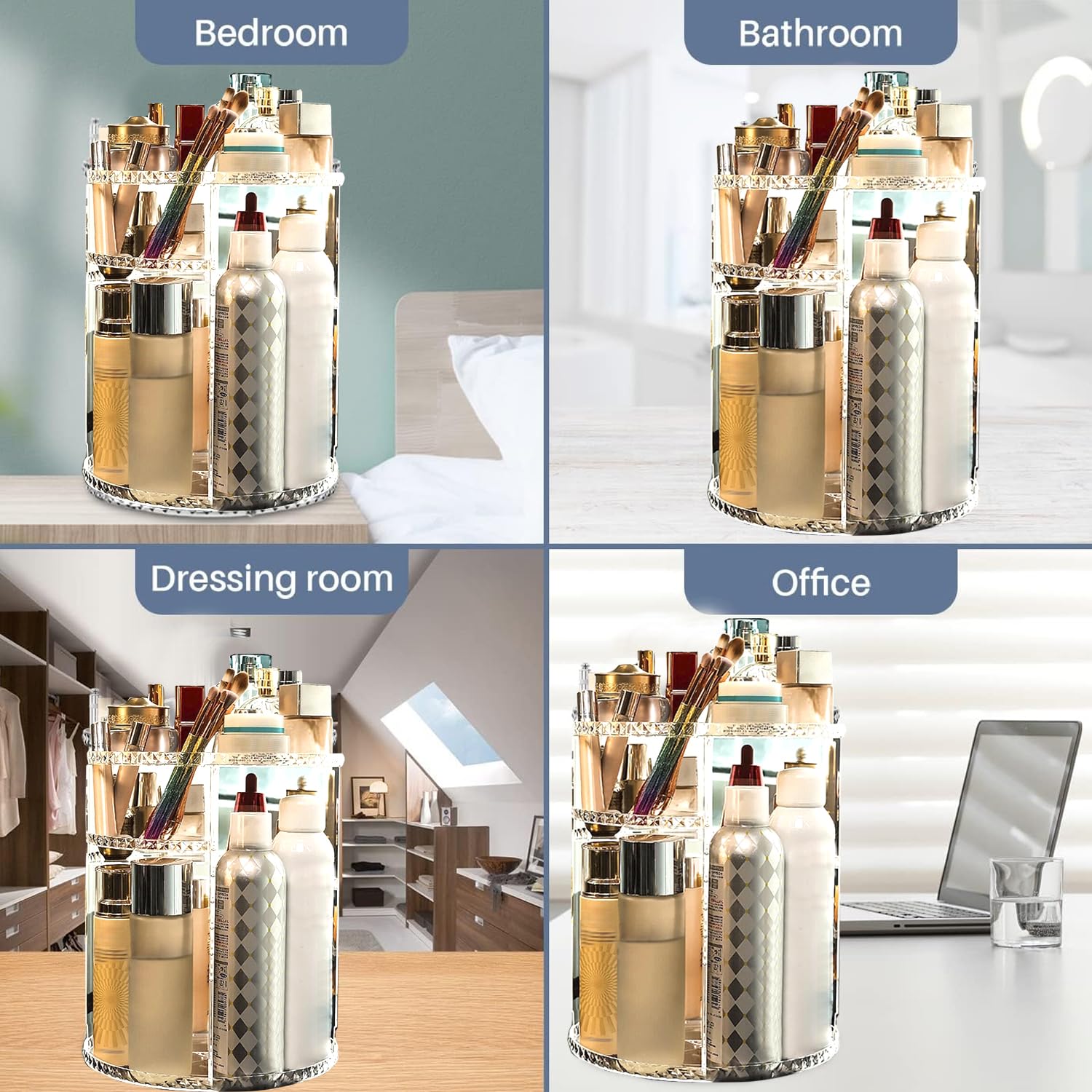 Introducing our 360-degree Rotating Makeup Storage Organizer, the ultimate solution for your beauty essentials. This adjustable, revolving organizer is designed to maximize space and enhance convenience. Crafted from high-quality acrylic, it combines durability with a sleek, modern look that complements any vanity or bathroom countertop. The organizer’s small capacity is perfect for those who prefer a minimalist approach, yet it efficiently holds a variety of cosmetics and skincare products. Featuring a smooth 360-degree rotation, accessing your favourite items has never been easier. The adjustable shelves can be customized to fit different product heights, ensuring that everything from tall lotions to small lipsticks can be neatly stored. With dedicated sections for lipsticks, brushes, and other accessories, this organizer keeps your items in place and within reach. Ideal for makeup enthusiasts and skincare aficionados, this rotating organizer offers a clutter-free solution that saves time during your beauty routine. Its clear acrylic design not only provides easy visibility of all your products but also adds a touch of elegance to your space. Whether you’re getting ready for a busy day or a night out, our 360-degree Rotating Makeup Storage Organizer ensures that all your essentials are organized, accessible, and beautifully displayed. Embrace efficiency and style with this must-have addition to your beauty collection.