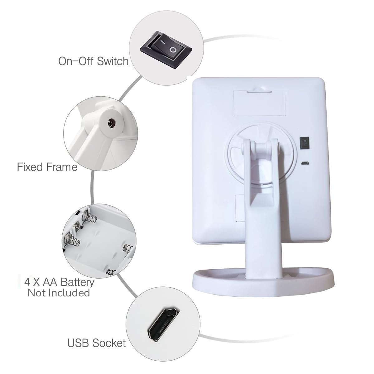 Convenient Stand: Equipped with a practical stand, this mirror with stand can be positioned on any flat surface for hands-free use. This feature enhances its functionality.
