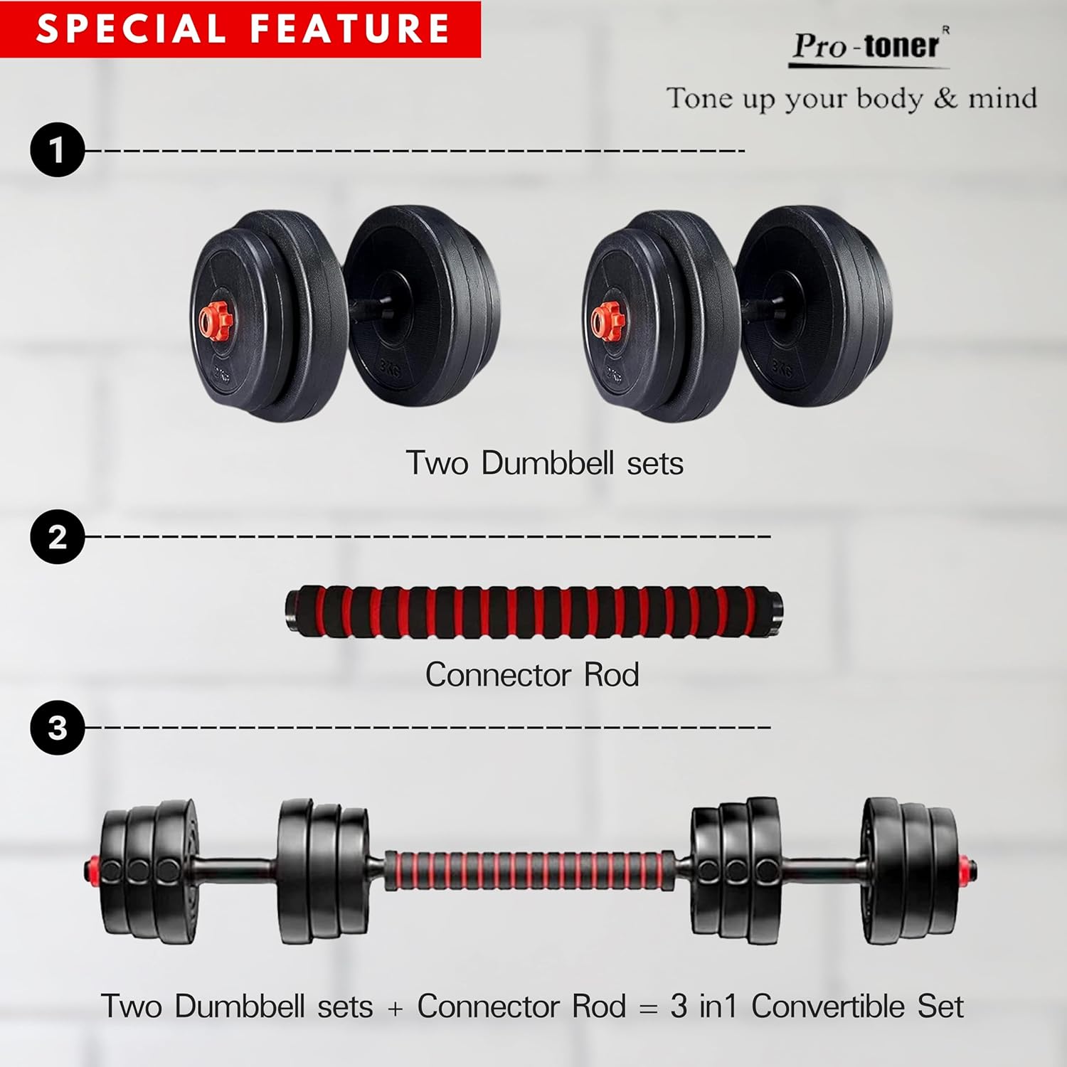 “The body achieves what the mind believes.” Start a workout routine with our Protoner home gym set, specially designed for home use economical,durable and sturdy. DURABLE MATERIAL: Keeping quality in mind, each piece of gym equipment in this kit is made of durable materials to ensure they are long-lasting even after prolonged and vigorous use. ONE FOR ALL:This kit contains gym equipment that can be used both by aspiring beginners or adept professionals. No matter what your fitness level, this kit includes equipment to suit the needs of easy, intermediate and intense workouts. A combination of gym equipment for the perfect workout, Highly durable and long lasting, A perfect muscle builder.