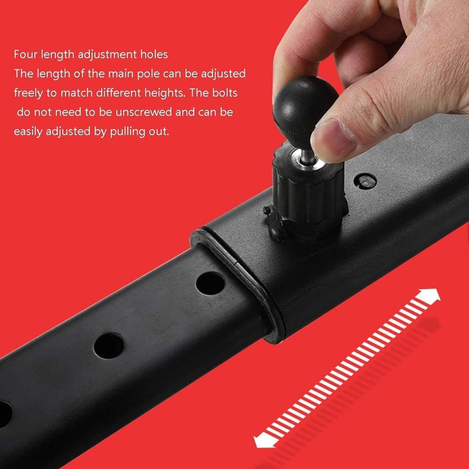 Five length adjustment holes, which can adjust the length of the main rod freely. The bolts can be used to match the height of the crowd without loosening. Pulling out can easily adjust the corresponding hole position for a comfortable sports experience.