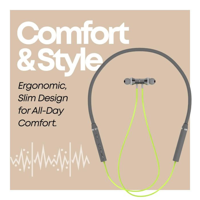 Lightweight In-Ear Wireless Neckband with 18 Hours of Playback-time on a single charge & Built-in HD Mic for Clear Call Quality.