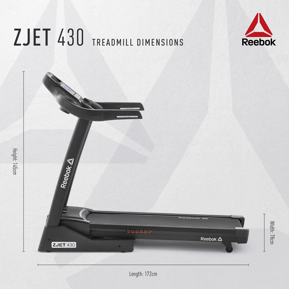 【Features 】Bluetooth Reebok App connectivity via dongle (included), MP3 connectivity and built-in speakers, Safe and simple soft-drop folding mechanism. Mobile device holder with safety grip texture【Shortcut 】Direct speed and incline shortcuts plus incremental buttons on handlebars