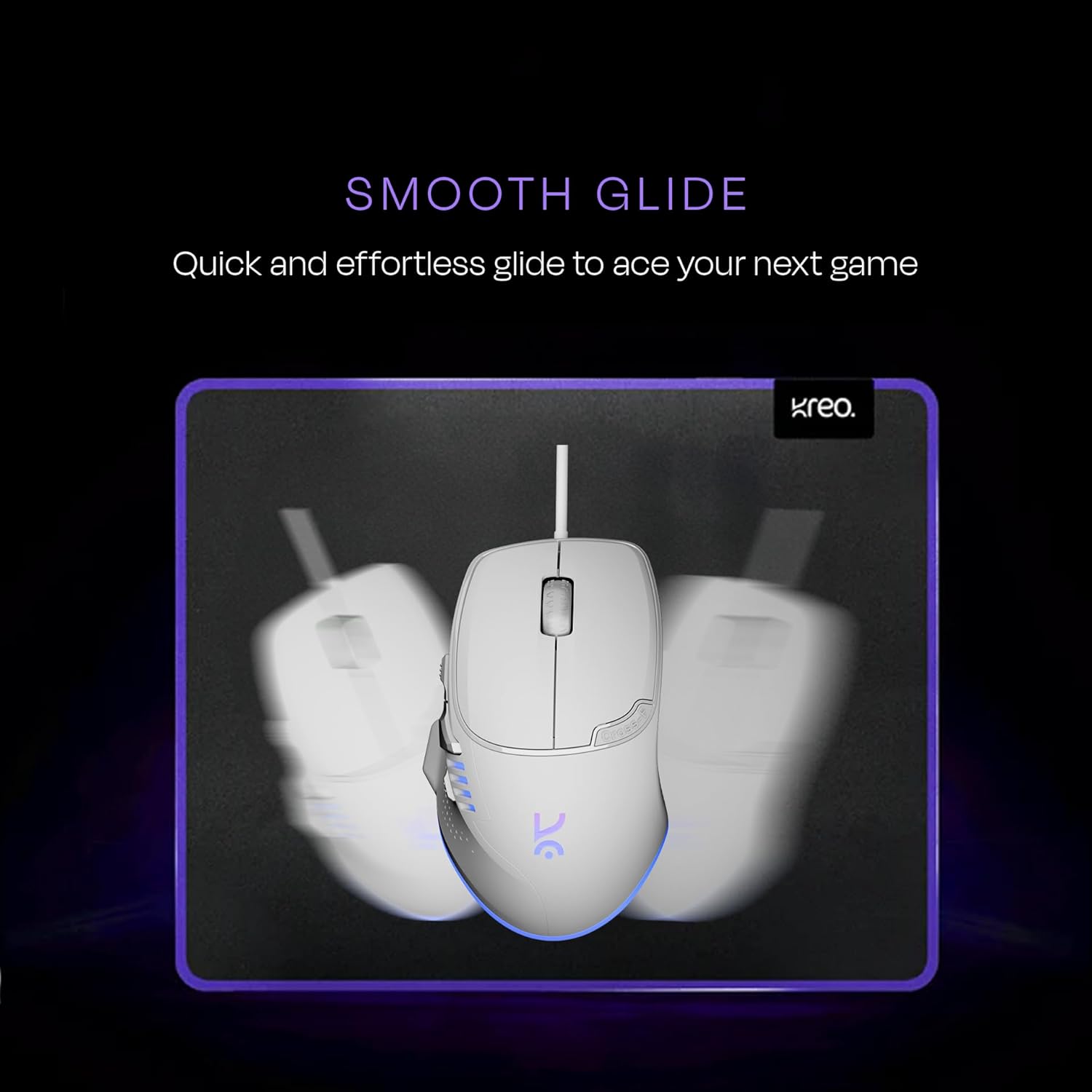 🔥 Programmable RGB lighting: Take customizations to the next level with customizable RGB lighting to match your gaming setup. Look and feel like a professional with a Kreo Hawk gaming mouse. 📌Compatible with all types of mice, wired or wireless, mechanical or laser, the Kreo Cliff Mousepad offers universal versatility. it strikes the perfect balance between compactness and functionality, it’s lightweight and portable for on-the-go use.