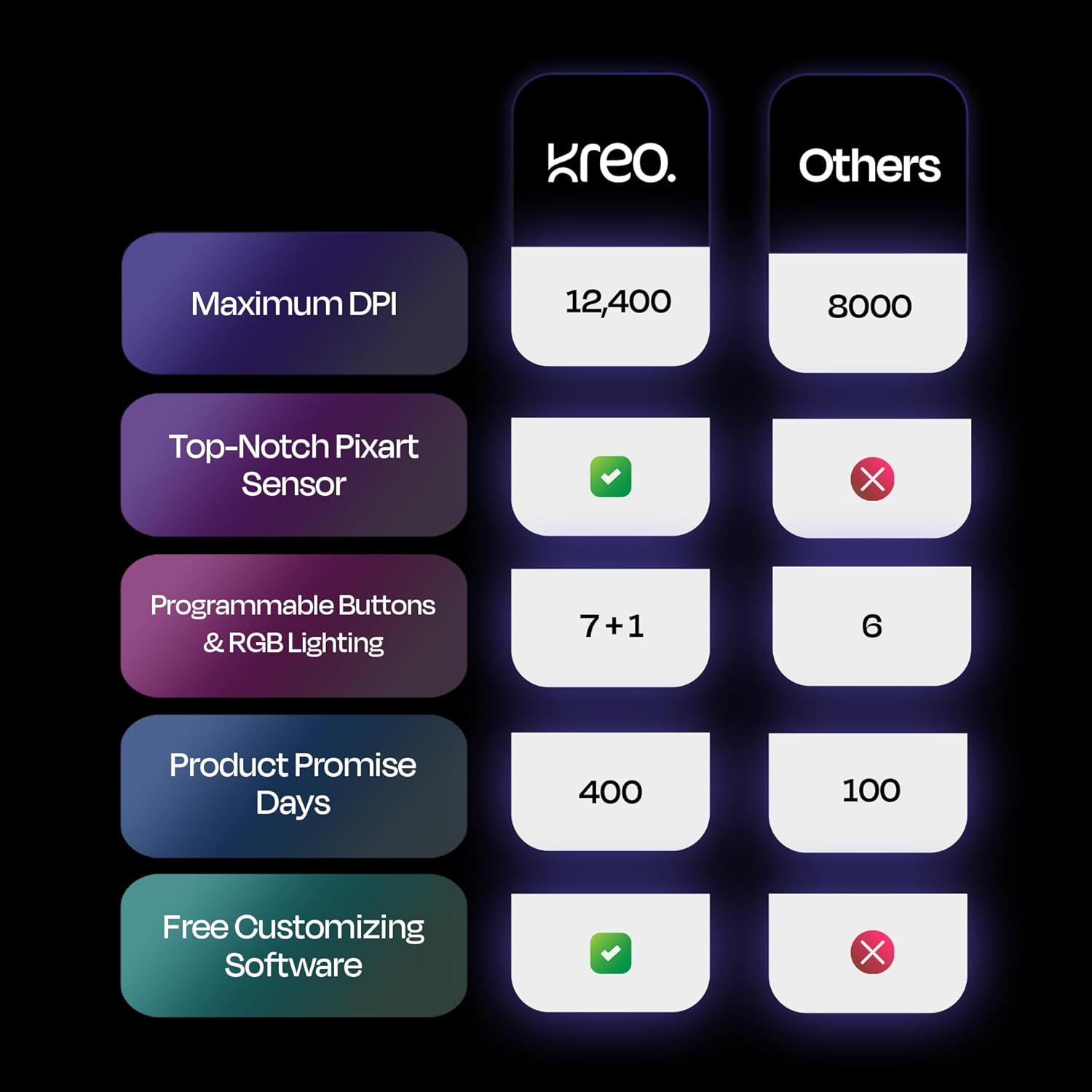 👑 Top-notch PMW3327 Sensor: Kreo Hawk professional gaming RGB mouse comes with the top tier PMW3327 sensor for unparalleled precision and performance for every game out there. Be it Call of Duty, God of War, Apex: Legends or any other PC game, Kreo Hawk will help you become a champion in all.