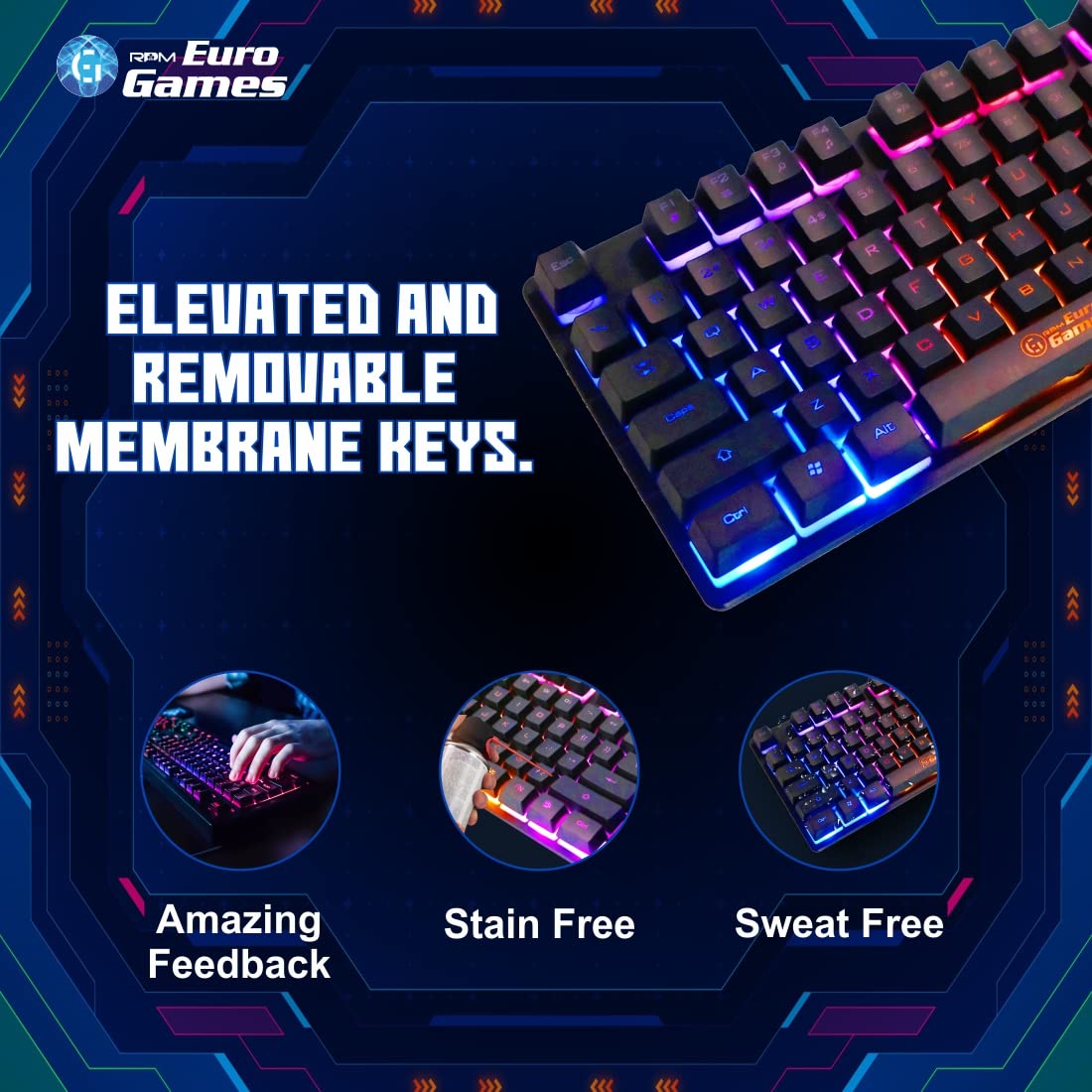Ergonomic Gaming Keyboard – The light up gaming keyboard has an ergonomic design. Curved keycaps, stepped layout, foldable feet, and crater keys. Gives you a comfortable typing experience and improves the accuracy of keystrokes. This LED keyboard is ideal for Gaming and Office work.