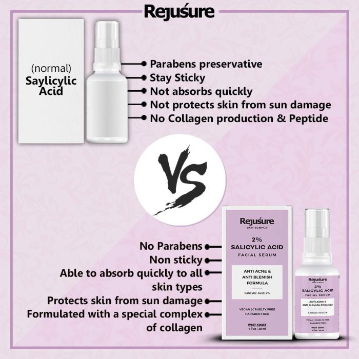 2% Salicylic Acid Formula: This serum is formulated with a potent concentration of 2% salicylic acid, a well-known ingredient renowned for its effective acne-fighting properties. It helps with breakouts and support clearer skin.