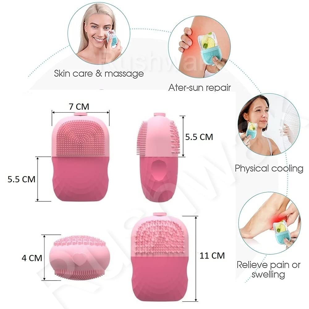 DEEP FACE CLEANSING & MAKEUP BRUSH CLEANING: Silicone face scrubber brush deep cleanses your skin. It removes blackhead, acne & dead skin with gentle massage. Brush is super soft and skin friendly. Ice face roller ‘s texture design also suitable for instant makeup brush cleaning.