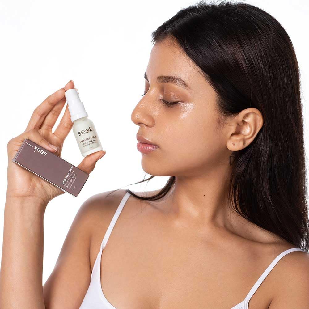 Seek Skincare’s Sunscreen Serum offers broad-spectrum SPF 47+ and PA++++ protection against harmful UVA and UVB rays. This lightweight, non-greasy formula is suitable for all skin types and leaves no white cast. Clinically tested for efficacy, this serum shields your skin from sun damage while allowing it to breathe. With its easy absorption and non-comedogenic properties, it’s an ideal choice for daily use. Protect your skin from premature ageing and discolouration caused by sun exposure with this high-performance sunscreen serum. Apply liberally 15 minutes before sun exposure and reapply every 2 hours for optimal protection. Available in a 15 ml bottle for your convenience.