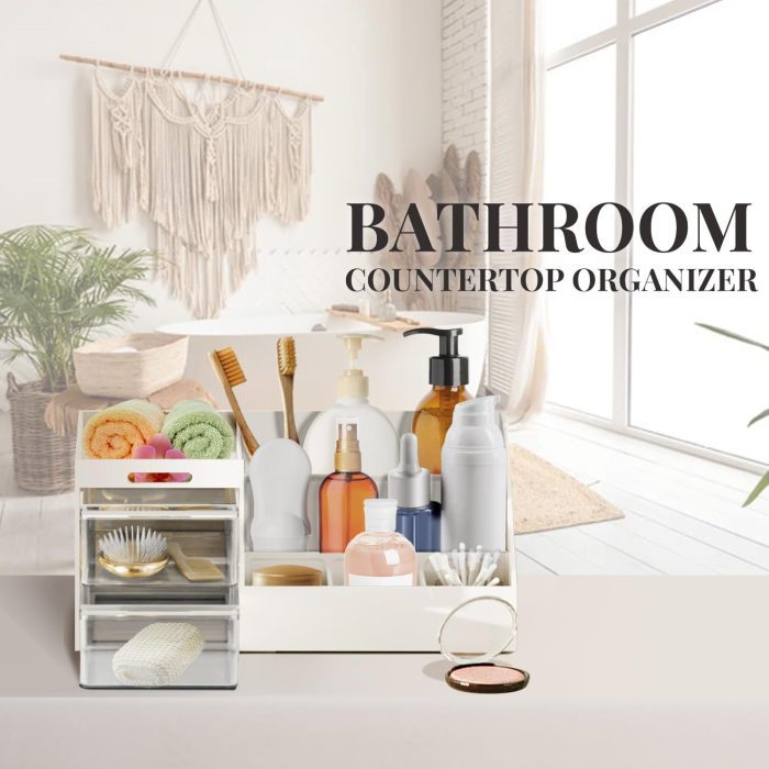 【DIY Detachable Partition】The large bathroom organizer with removable compartment can customize the storage tray to place your cosmetics of different sizes, very suitable for larger size bottles of skin care products or shampoos.