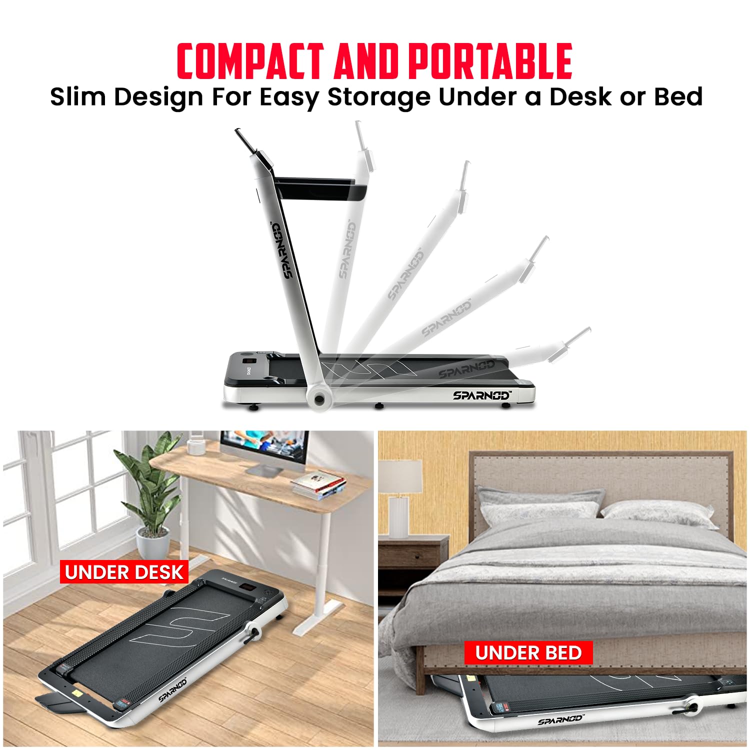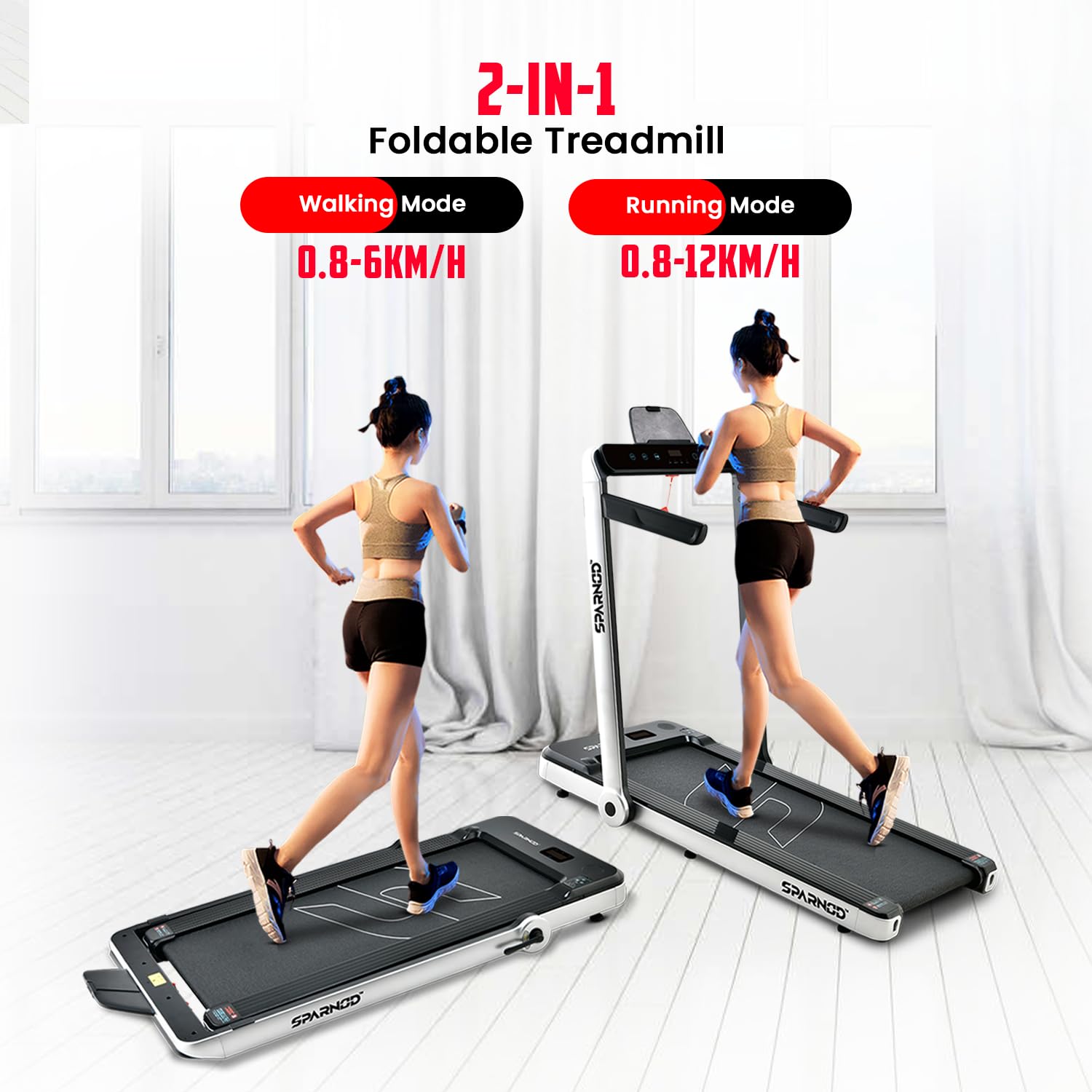 Compact and Portable Features a Slim Design that allows for Easy Storage Under a Desk or Bed, making it ideal for Small Spaces.2-in-1 Walking-Running Mode With its Foldable Riser, the Treadmill can be Transformed into an Under-Desk Walking Pad or a traditional Treadmill, providing flexibility in workout options and catering to different exercise preferences.