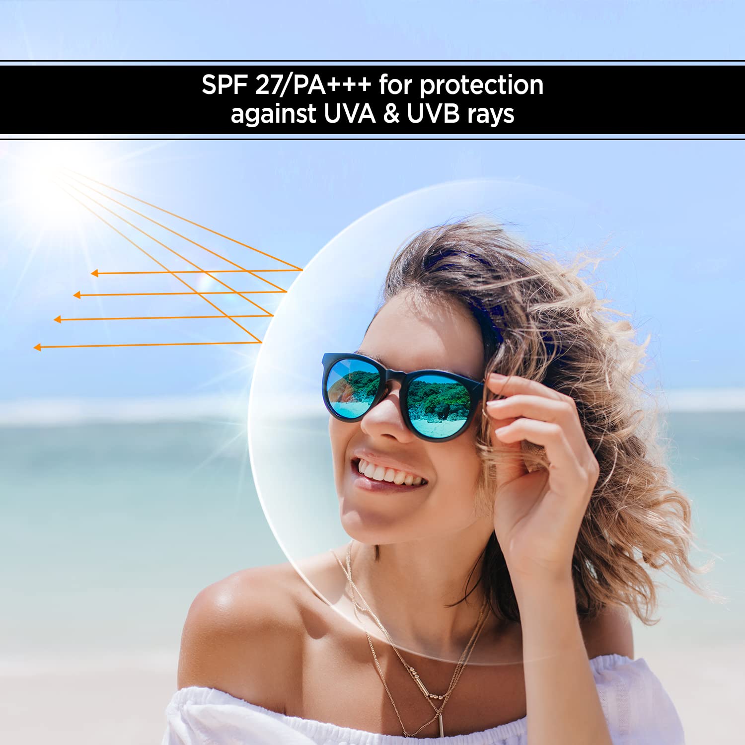 Multi-Protection to the skin : It contains SPF 27/PA+++ which protects your skin against UVA/UVB. Not just that but it also protects your skin from harmful blue light coming from devices and with anti-pollution effects it blocks dirt, dust and impurities and prevents premature aging.