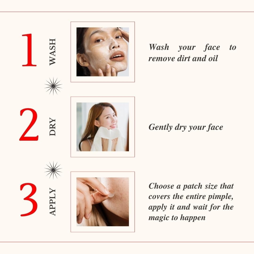 Heals acne: Targets both surface and underlying pimples. Extracts pimple pus: Hydrocolloid dressing draws out impurities. Unclogs pores: Salicylic acid prevents future breakouts. Prevents pimple marks: Promotes clearer, smoother skin. Protects from picking: Helps resist the urge to touch your pimple. Comfortable day and night use: Discreet and gentle on the skin.