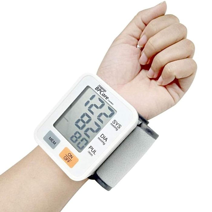 Overview standard BPCare comfort wrist is an excellent Bp monitoring device which helps you to check and manage blood pressure comfortably at [Home, Office, Sports club, Gym]. This BP machine is marketed in India by SD Biosensor Healthcare Pvt. Ltd. which is a renowned manufacturer of Healthcare Devices and Rapid Diagnostic test kits. This blood pressure wrist monitor has designed by R & D Team with focus of solving three purposes which are (Comfort to carry, Easy to perform, Accurate & match Gold standard). Key Features: # Fully Automatic. # Free Size Cuff. # Big LCD Display # 60 Memories # Motion Detection # Free Portable Carrying Case.