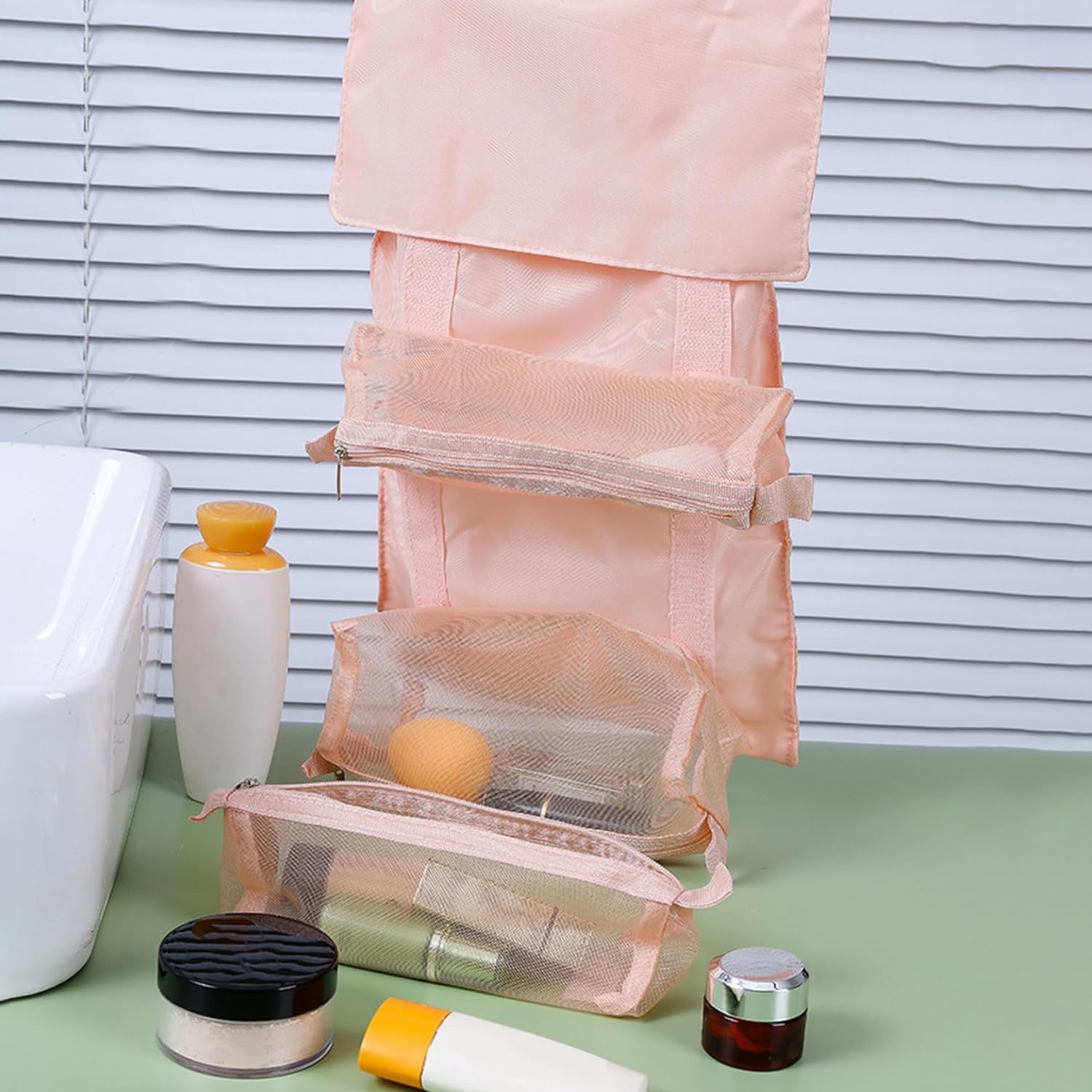 {4-IN-1 Design} :- The foldable cosmetics bag offers multiple detachable compartments or pouches that allow for versatile use as a standalone bag or in combination with the main bag, ensuring flexibility and organization.