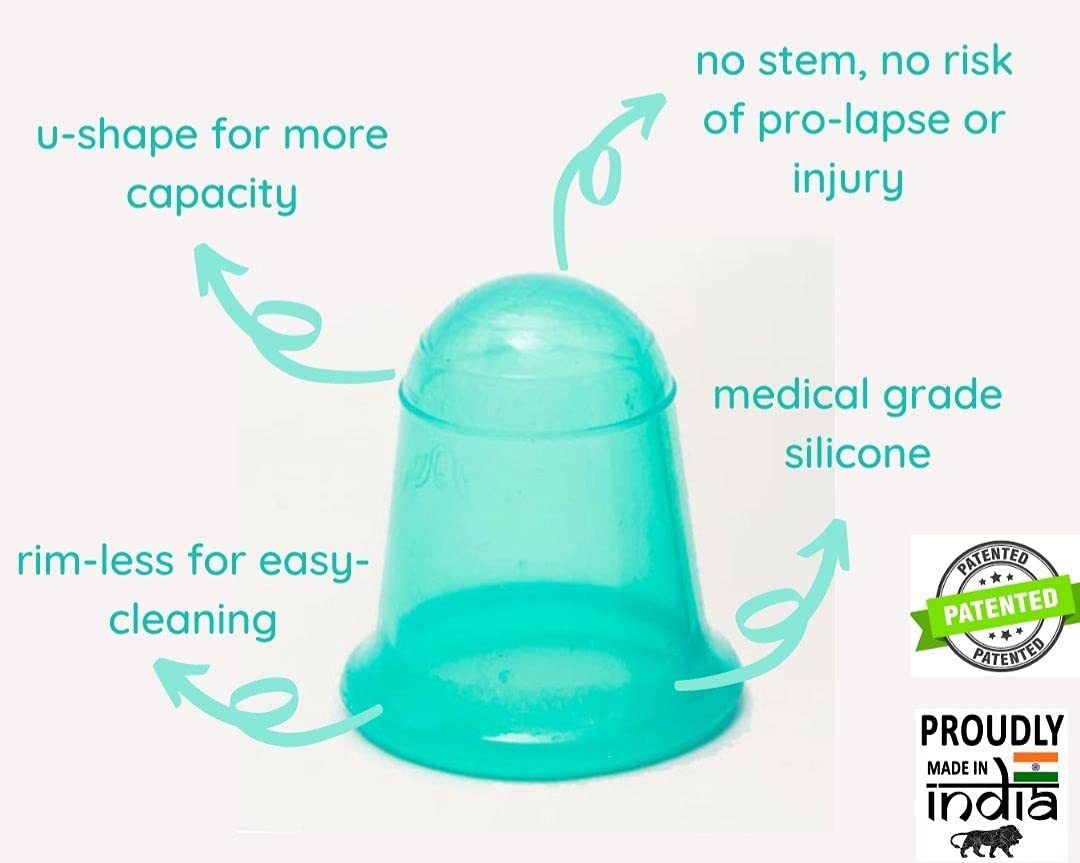 Why Stemless Menstrual cup? * A menstrual cup is provided with a knob or stem to locate the base, but ladies think that its there to pull out the cup holding the stem resulting in prolapse or harming the vaginal walls. * If there is no room for stem in the vaginal canal, it pokes and hurts. * The U shape of the cup provides more space to hold more period blood. Maximum capacity yet small and compact in size. * To experience the wow factor, a feeling of not wearing anything.
