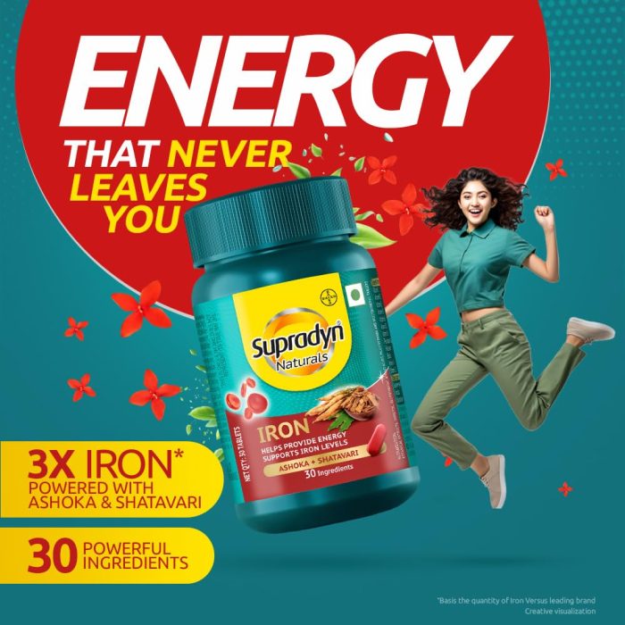 FORMULATED TO ENHANCE OVERALL WELLNESS: Supradyn Naturals Iron Multivitamins, from India’s #1 Multivitamin Brand, is a 100% veg & sugar-free formula with 30 essential vitamins and minerals.