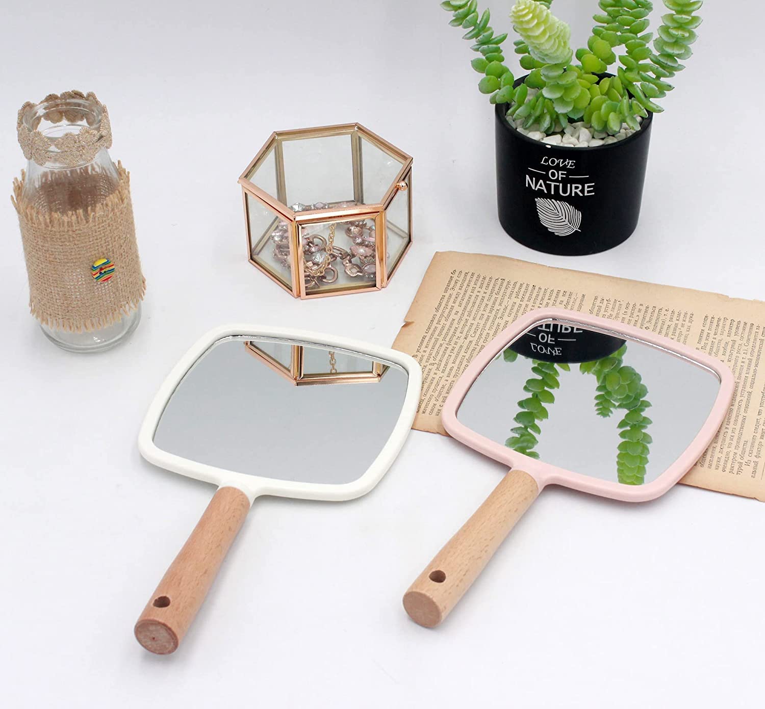 Convenience for Travel: The compact size of handheld makeup mirrors makes them ideal for travel. Whether you’re in a hotel room, at a friend’s house, or on a trip, a handheld mirror ensures you always have a reliable tool for applying makeup or checking your appearance. Our cute mirror aesthetic is enhanced by a charming heart shape, making it a stylish addition to your vanity. The wooden handle adds a touch of classic elegance.