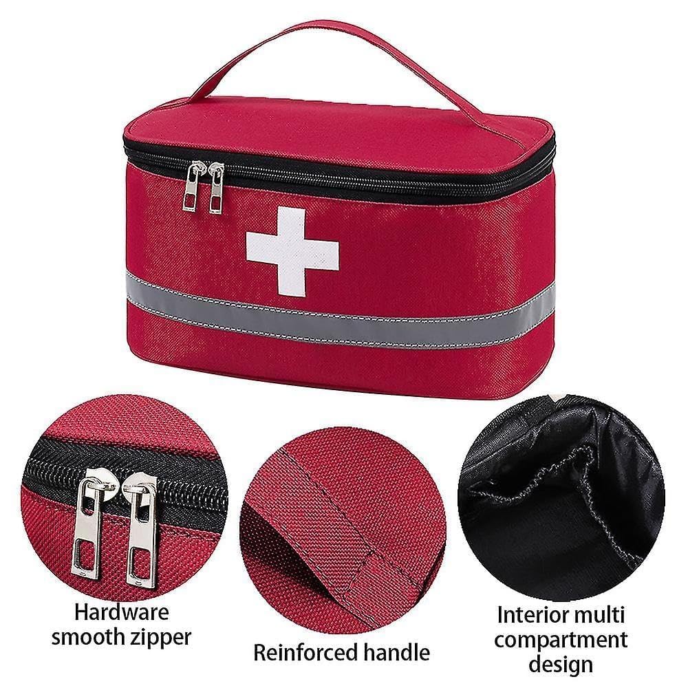 This emergency bag comes with double zippers for smooth opening and closing. And the reinforced handle and portable design make it comfortable to grip and easy to carry. ★The first aid bag with multiple compartments can keep your first aid items neat and organized. And you can also use it as a travel bag, cosmetic storage bag, and home storage bag. ★It is constructed of Oxford cloth material. ★Multi Use: For various occasions use, it can be used at home or outdoors, travel, camping, hiking, backpacking, travel. ★Durable: Durable Material, lightweight and wear-resistant, full zip design provides wonderful protection for medicines in the first aid bag. ★Classify: The first aid pouch can separately hold and classify your medical with multi-pocket. ★Portable: Make sure you store it in your backpack, vehicle glove box, baby diaper bag, handbag, purse or med cabinet for quick access. ★Convenient: Good companion for unexpected emergencies or injuries. Convenient for families and friends to get timely and effective treatment