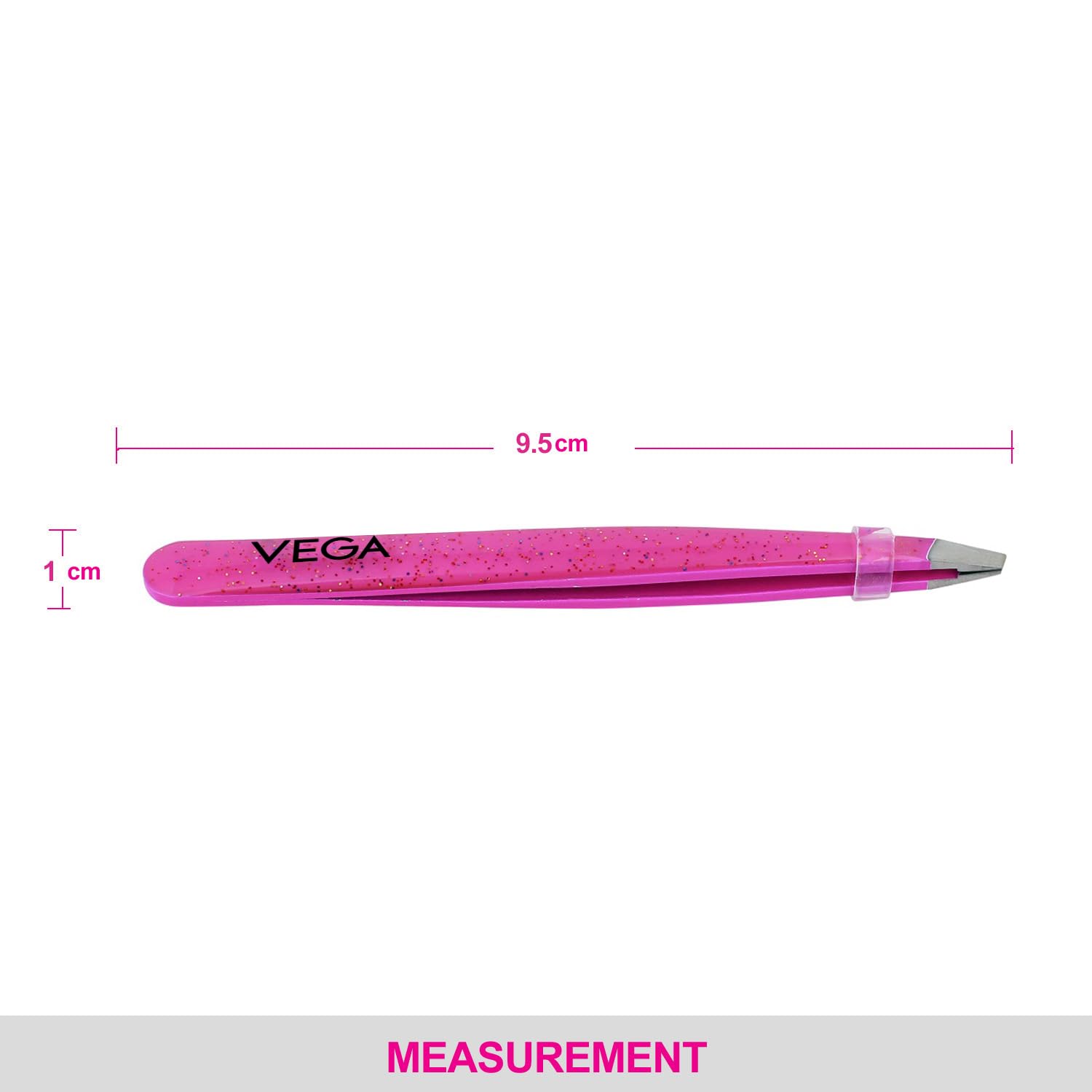 Introducing VEGA all that glitter tweezer, it has a gorgeous glitter finish which is on-trend. This quality tweezer with hand filed slant tip and non-slip grip. The tips are hand polished and perfectly aligned to grab unwanted hair with ease and precision.