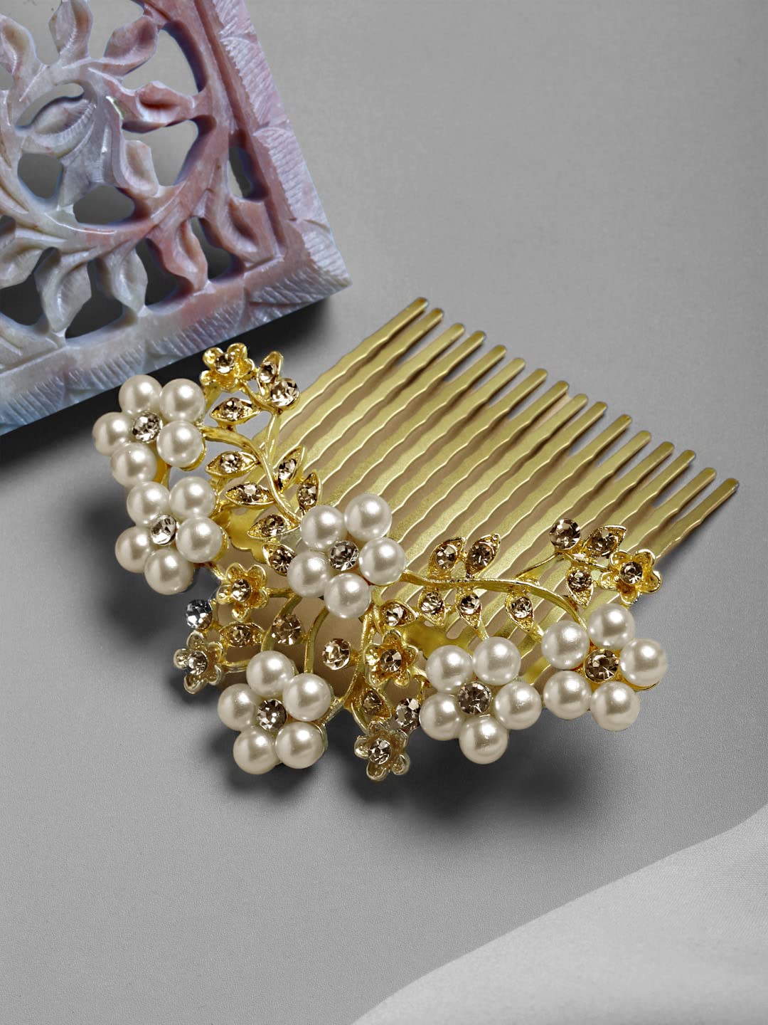 This Hair Clip is made using a high-quality brass material that is very durable in nature. The material is gold plated to add a charm to this hair clip. This hair clip is designed in such a way that it can be easily inserted in your hair, without causing any irritation. The clip does not bend when in use and it can retain its shape every time. This Hair Comb Clip is a great choice for weddings, proms, parties or special occasions because of its attractive design.
