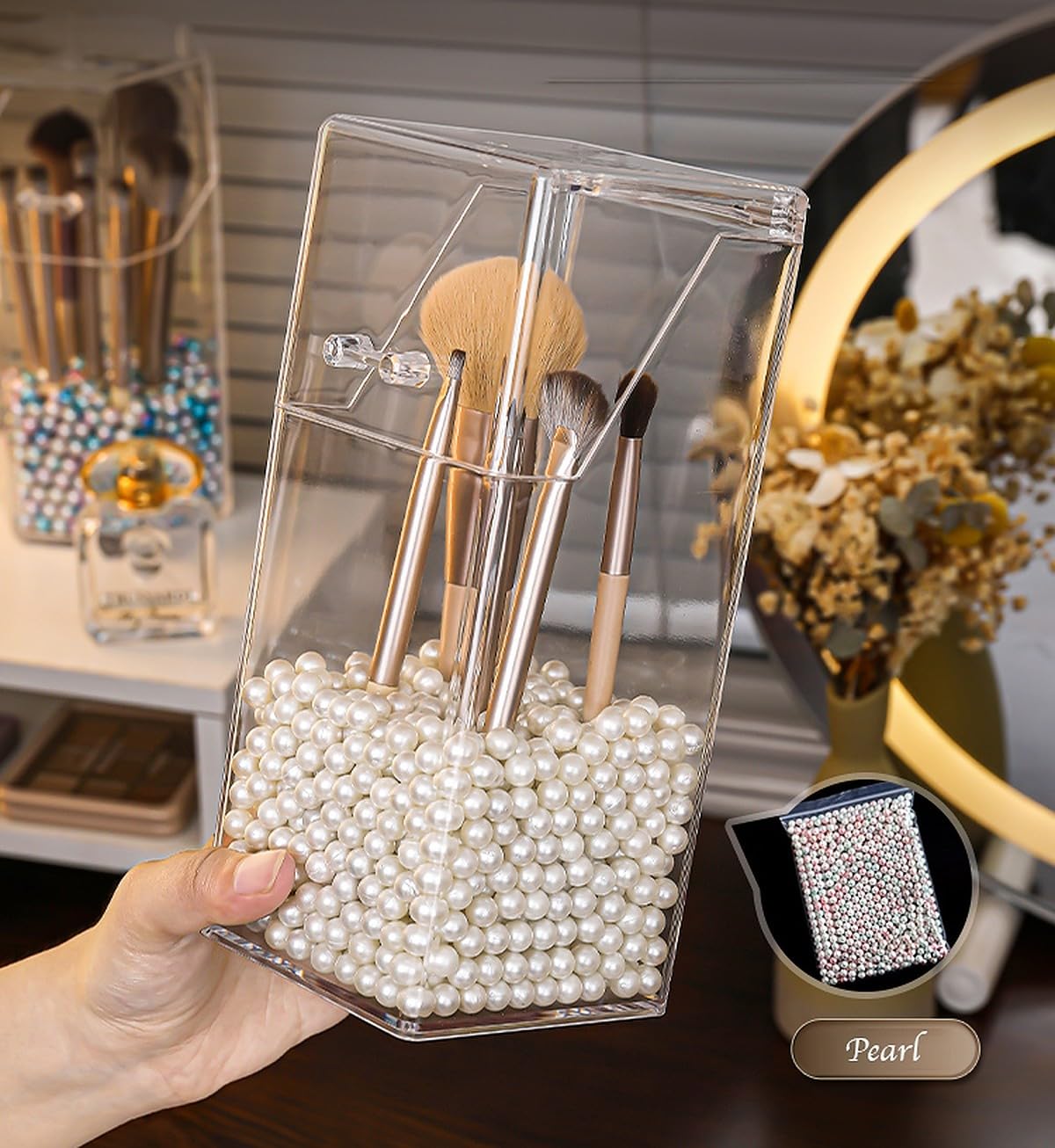 MATERIAL & SIZE: Waterproof Polystyrene, Size : 8.5 x 8.5 x 21 cm, Package Includes : 1 x Brush Box + 1 Pack Pearls