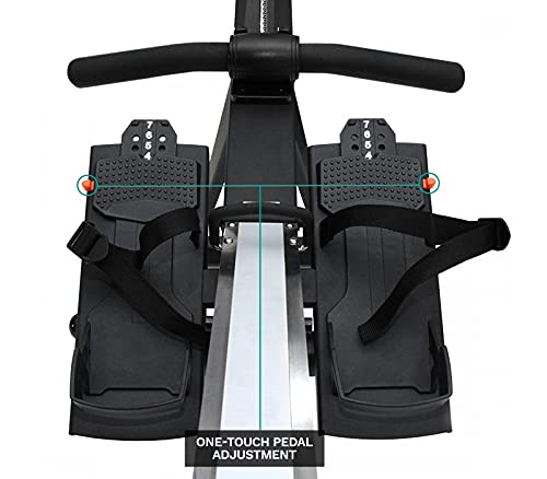 Console/Programs – Time Rowed, Meters, Strokes per Minute, Calories, Watts, 500m pace per stroke, total strokes, heart rate (when connected to a heart rate monitor) – 9 Displays in large middle window: Total Time, 500m Pace average of workout, Average Meter per stroke, Max Heart Rate, Calories per Hour, Force Curve, Max Watt, Watt Chart per stroke, Average Watt – Pre-Built Programs: Quick Start, Competition Racing, Interval/Tabata, Time, Distance, Calories, Strokes, Heart Rate