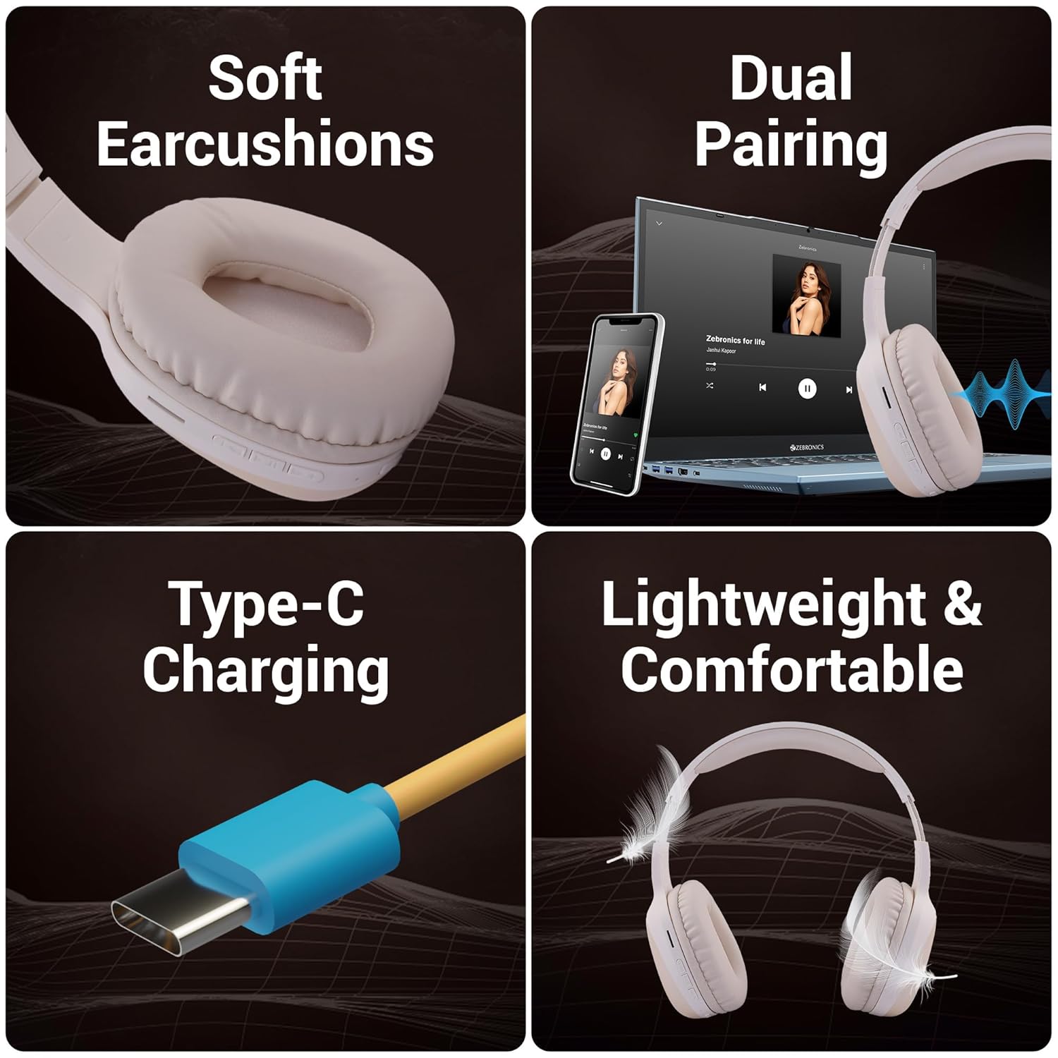 Longer Playtime: You can continue dancing to your favorite tunes for up to 60* hours with this headphone, which charges its rechargeable battery via type-C charging