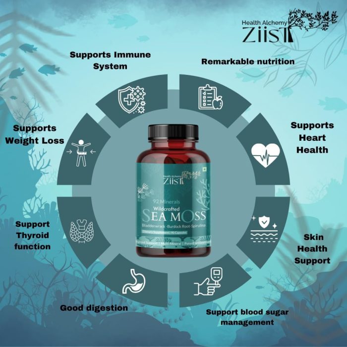 Ziist wildcrafted Sea Moss is enriched with Bladderwrack and Burdock, traditional herbs known for their thyroid-supportive properties.